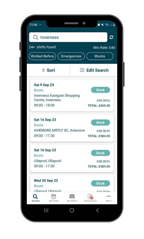 Search 100,000+ shifts across the UK. Filter shifts by location, date or rate. Apply for as many shifts as you like, our technology means you'll never be double booked.